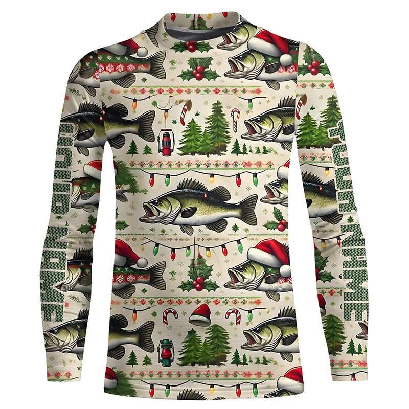 Custom Largemouth Bass Fishing Ugly Sweater Pattern Style All Over Shirts Christmas Fishing Shirt IPHW7903