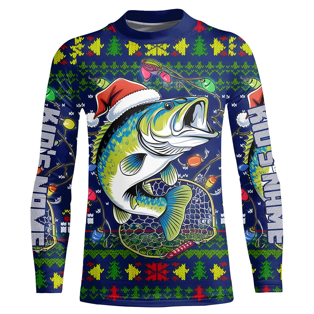 Custom Christmas Ugly Sweater Pattern Largemouth Bass Fishing Shirts, Christmas Fishing Gifts IPHW7968