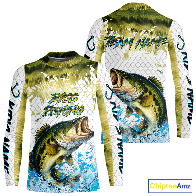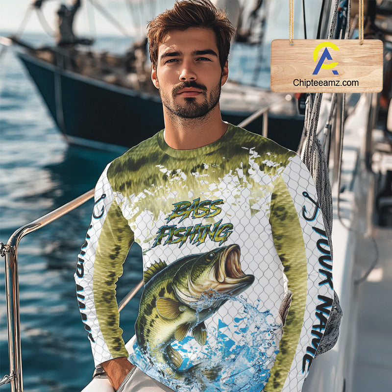 Largemouth bass fishing green scales UV protection custom hooded sun shirt, Bass fishing jerseys NQS10229