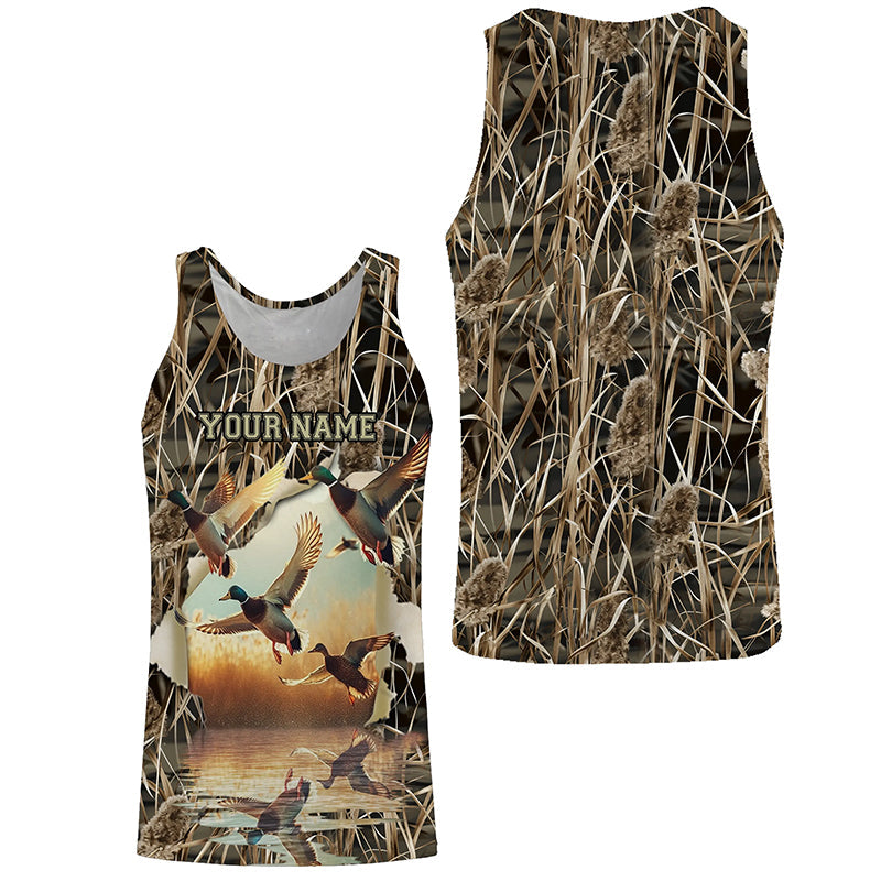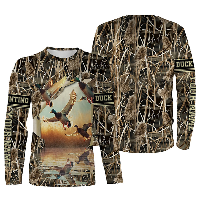 Mallard Duck Hunting Waterfowl Camo Custom Name Shirts for Men and Kid, Duck Hunting clothing FSD688