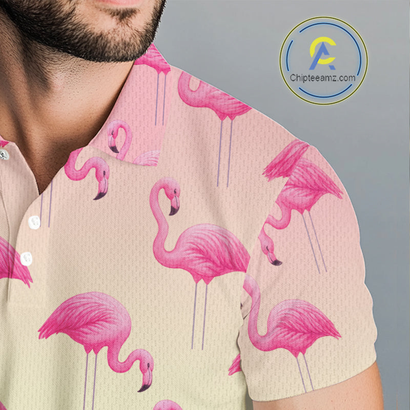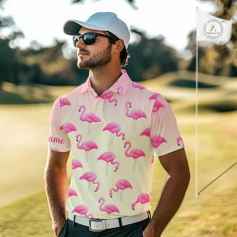 Personalized pink gradient Flamingo pattern Men golf polo shirt Custom golf team theme outfits NQS10324