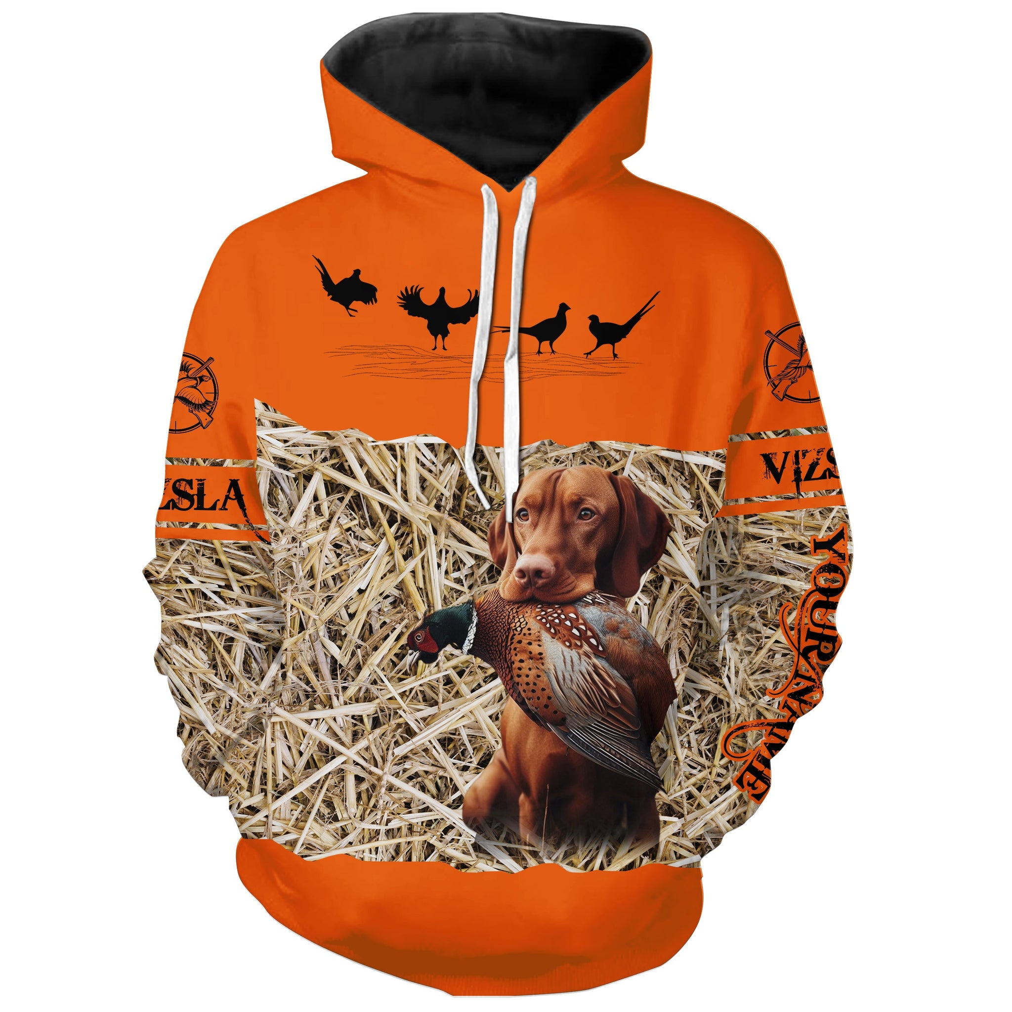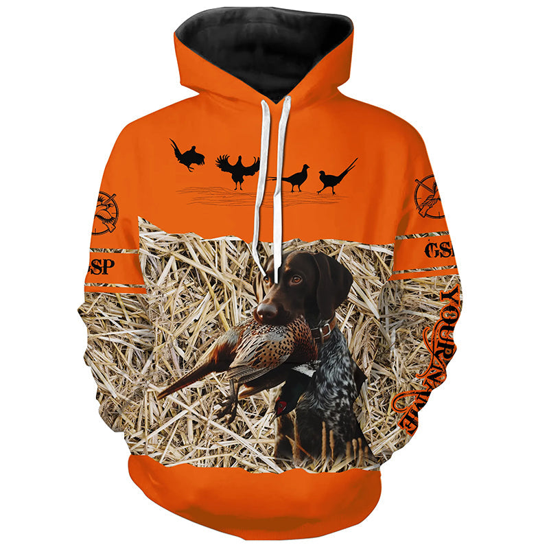 Pheasant Hunting Blaze Orange color Custom name Shirts with Hunting Dogs, Pheasant Hunting clothing FSD4547