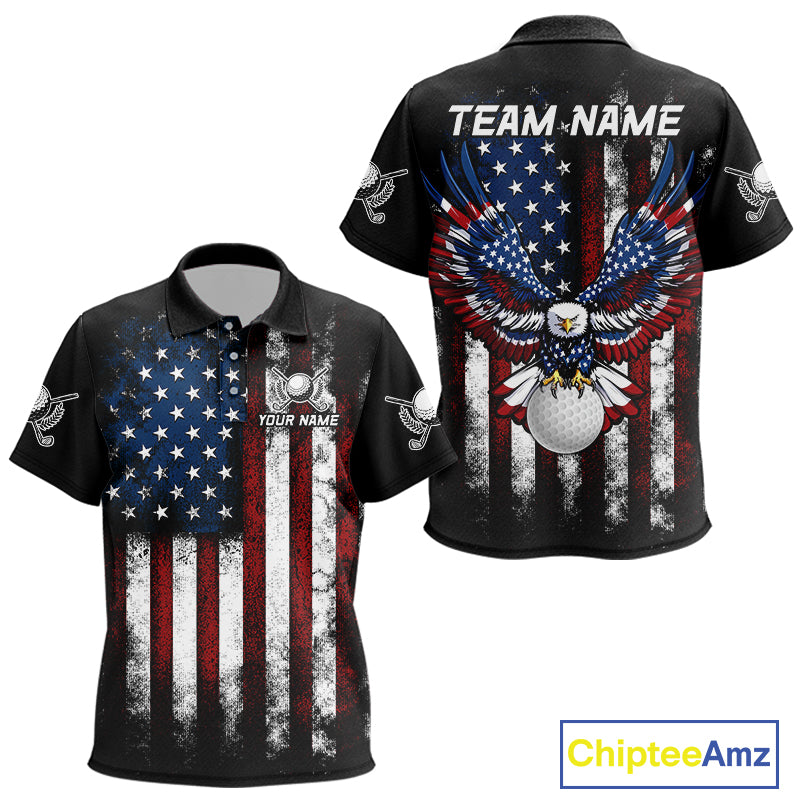 Vintage American Flag Eagle Black Golf Polo Shirts For Kid Custom Kid patriotic golf shirts NQS10502