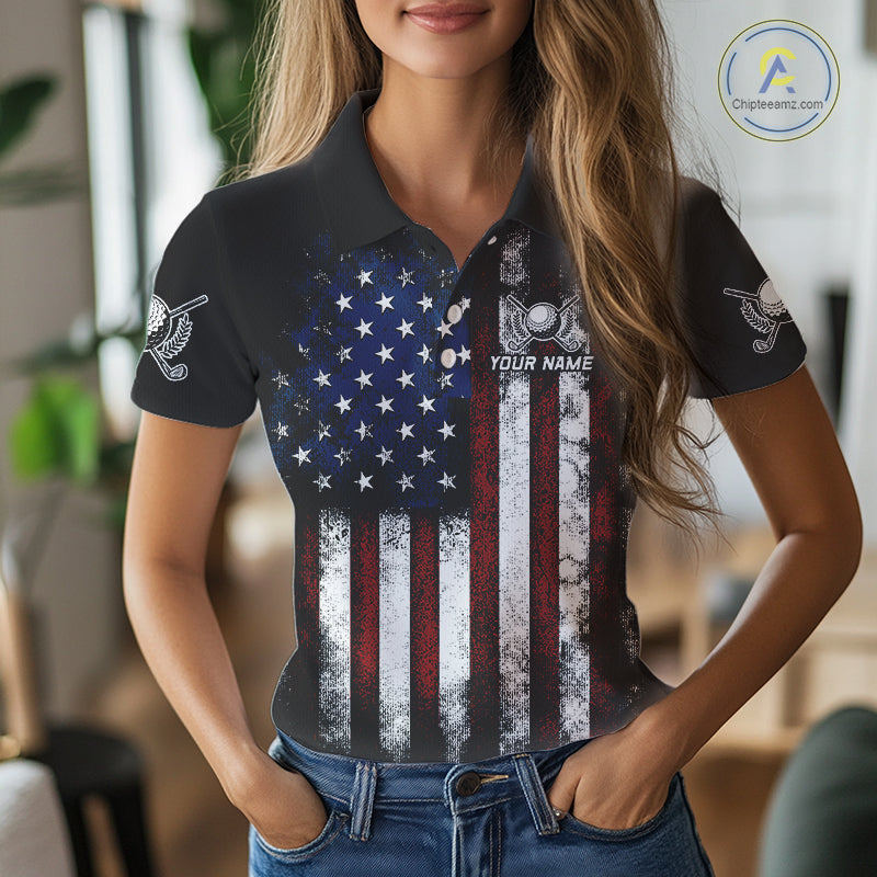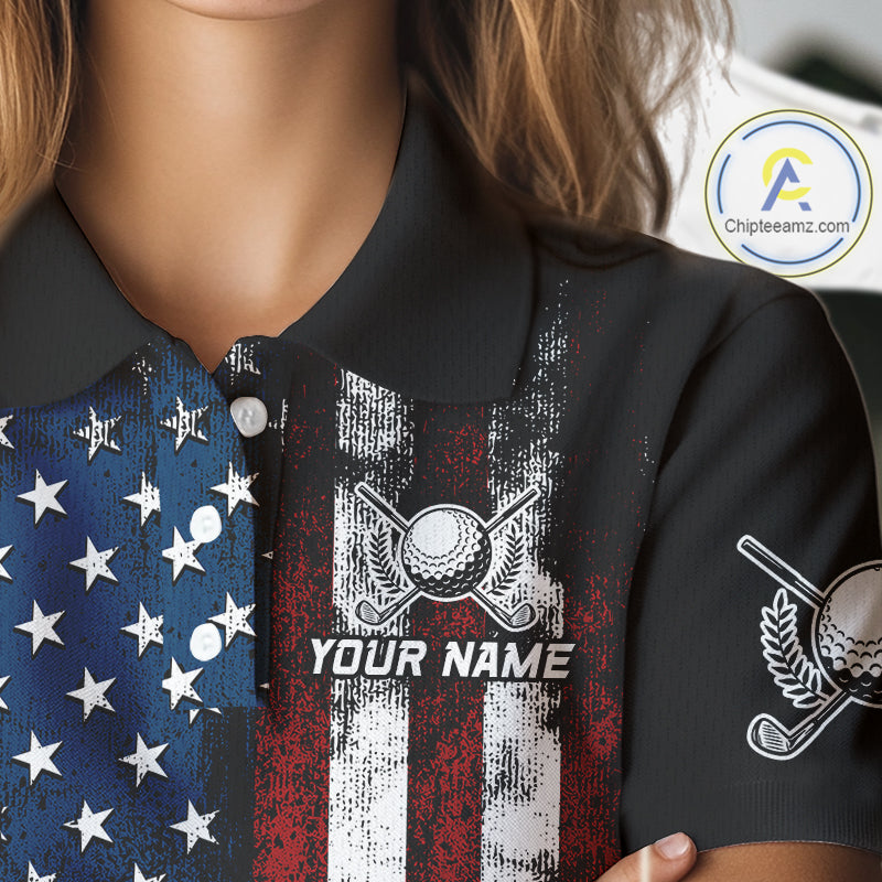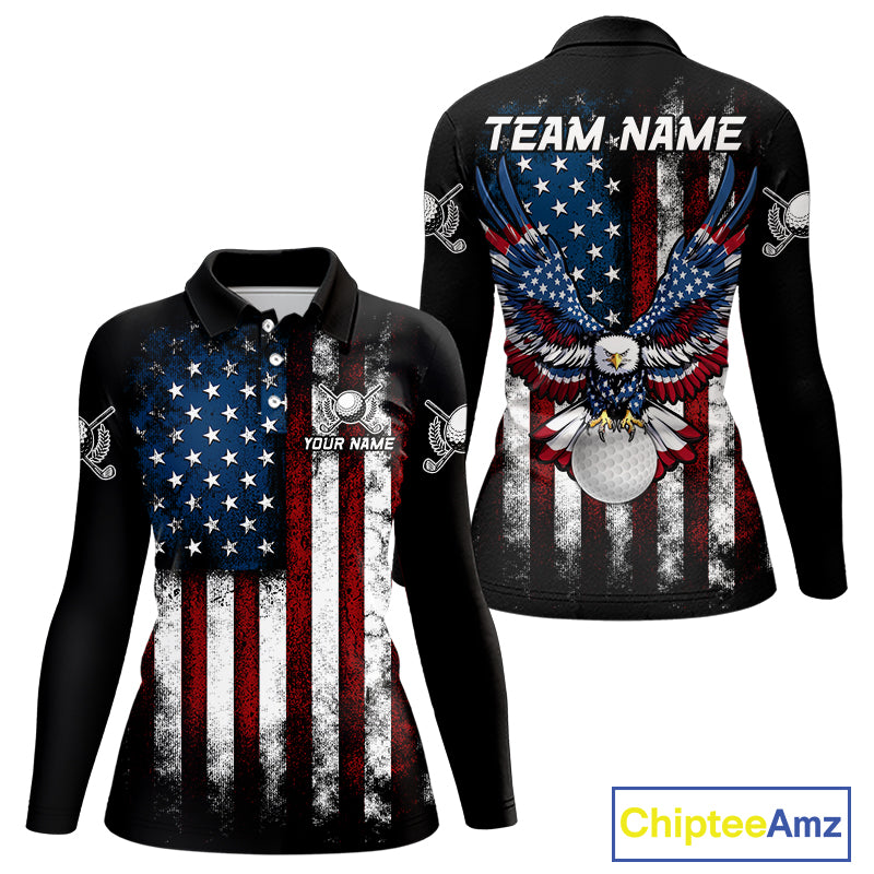 Vintage American Flag Eagle Black Golf Polo Shirts For Women Custom ladies patriotic golf shirts NQS10502
