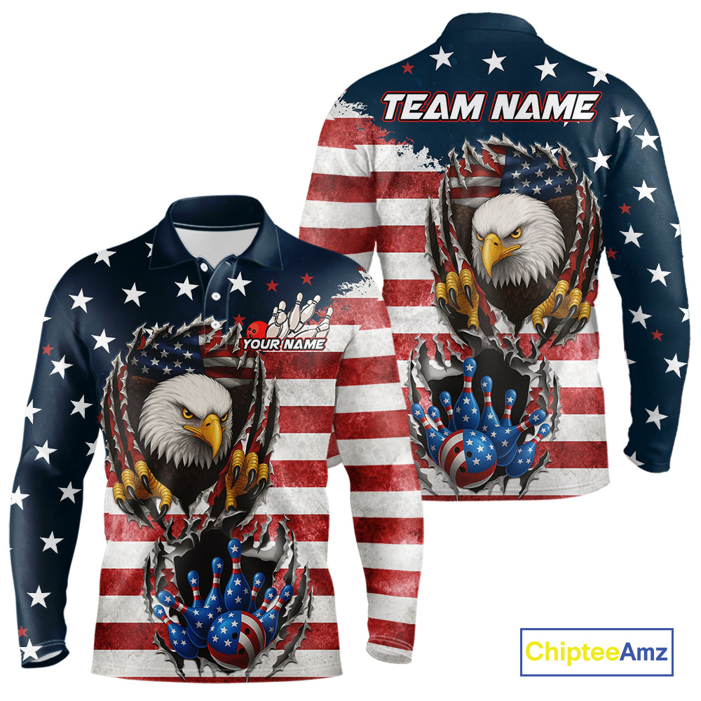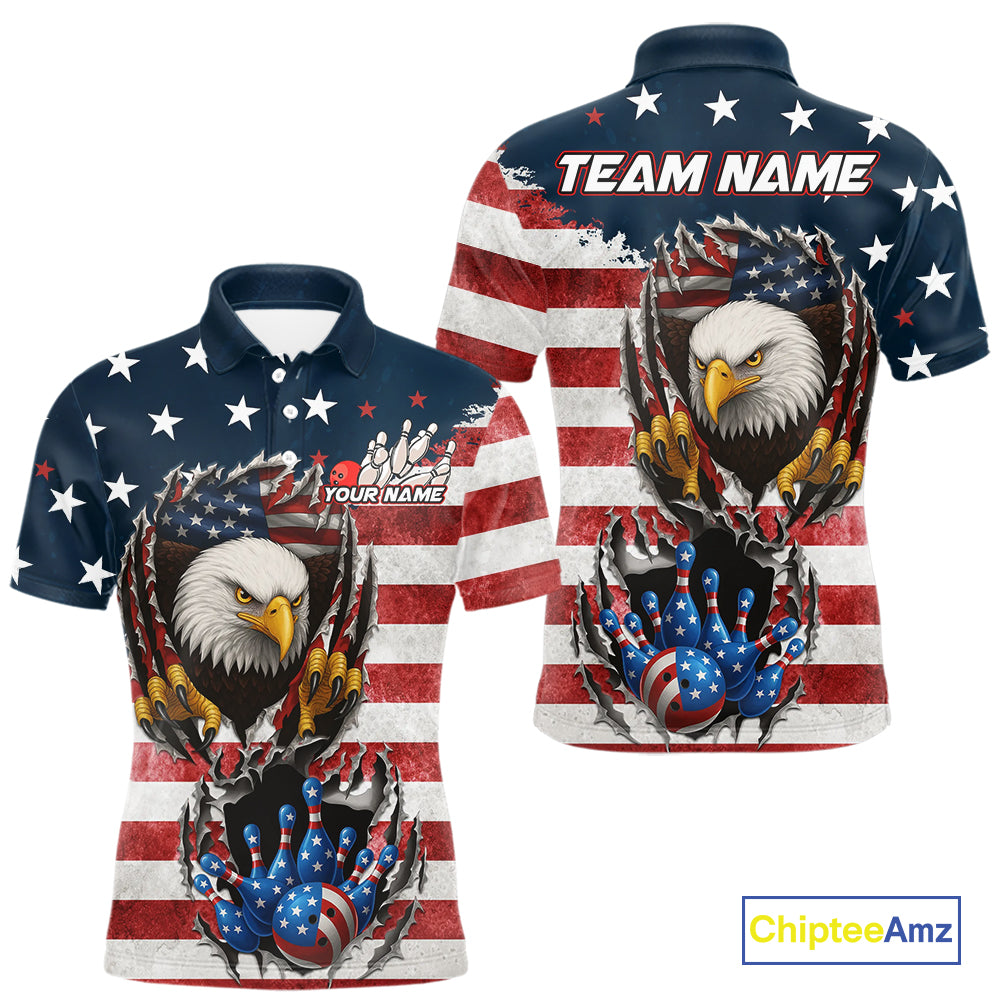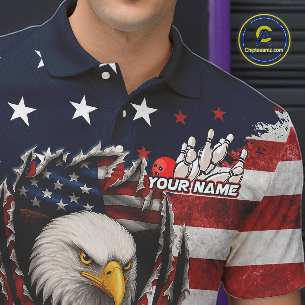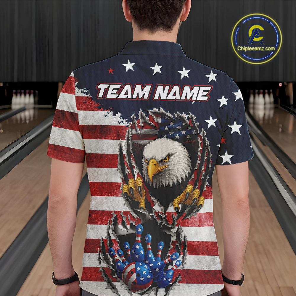 Vintage American Flag Eagle Bowling Polo, 1/4 Zip Shirt for Men Custom Patriotic Team Bowling Jersey NQS10569
