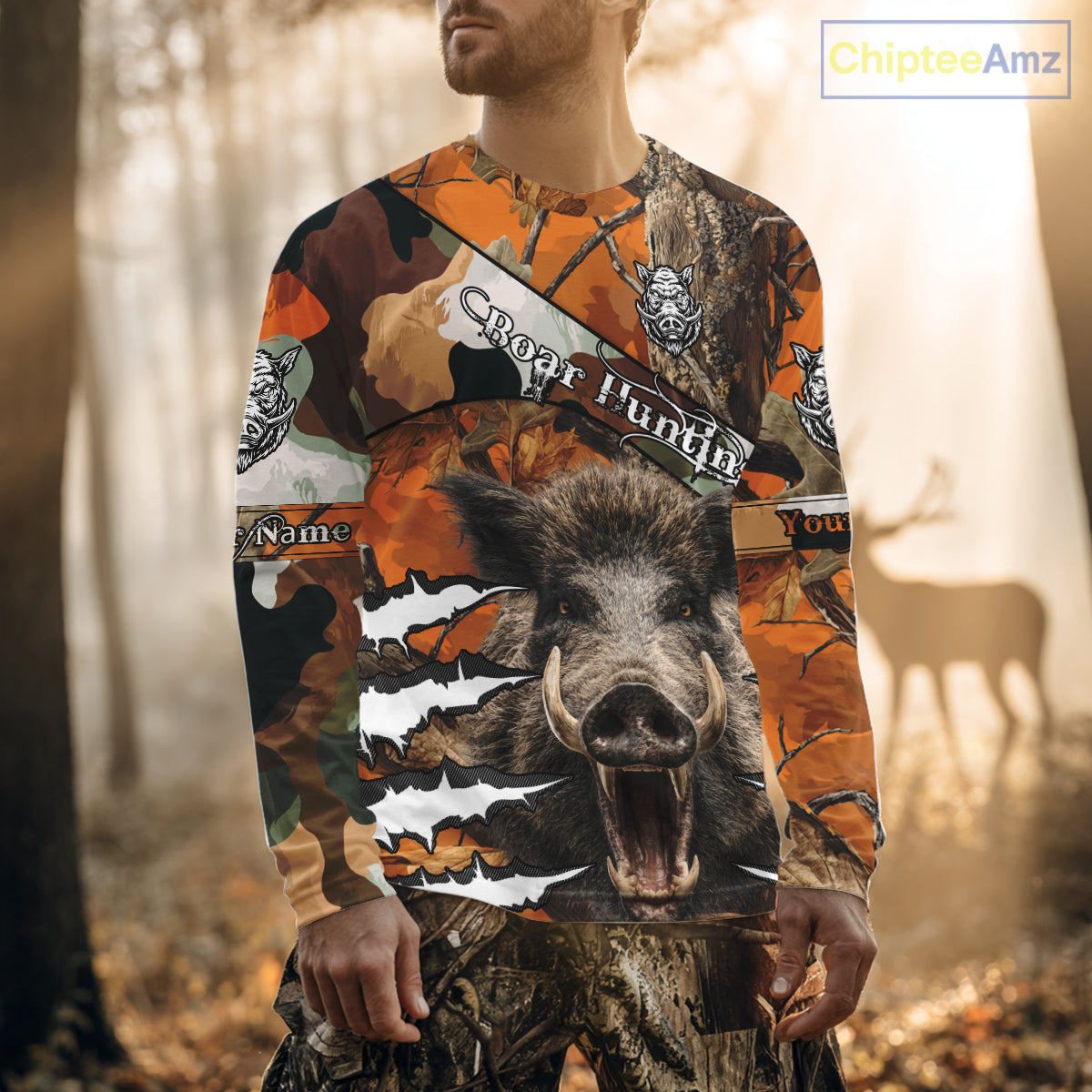 Wild Hog Hunting Orange Camouflage Custom Name Shirts, Personalized Boar Hunting Shirts NBT133