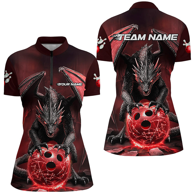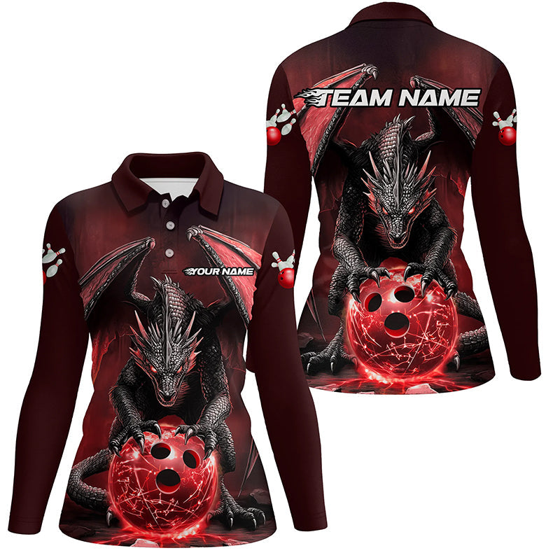 Custom Red Dragon Bowling Team Shirts For Women, Bowling Tournament Bowler Uniform Outfits IPHW7988