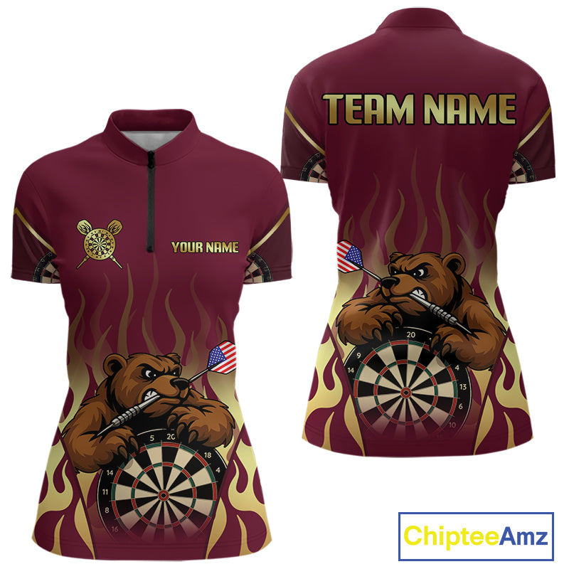 US Flag Dart Arrow Custom Brown Bear Dart Shirt For Women, Dart Team Jerseys NYN0091