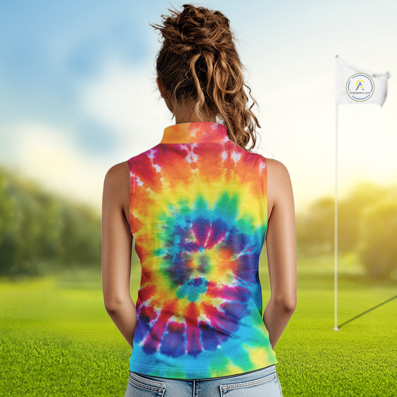Women Sleeveless Polos colorful tie dye pattern custom It's in my DNA peace love golf top for ladies NQS10391