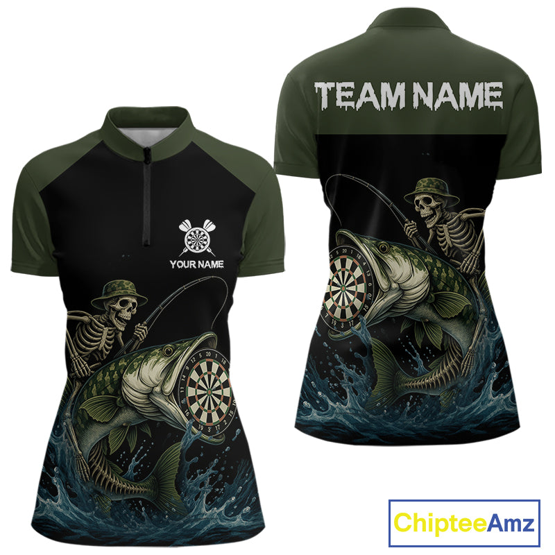 Funny Skeleton Fishing Darts Shirt For Women, Darts Jersey With Pocket Option TDM3953