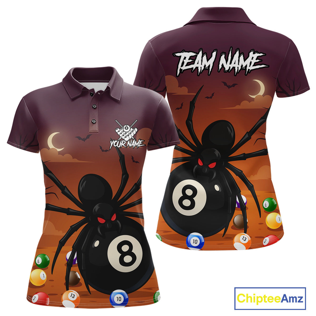 Orange Funny Spider Pool Balls Billiard Shirt For Women Custom 8 Ball Halloween Billiard Apparel TDM4927